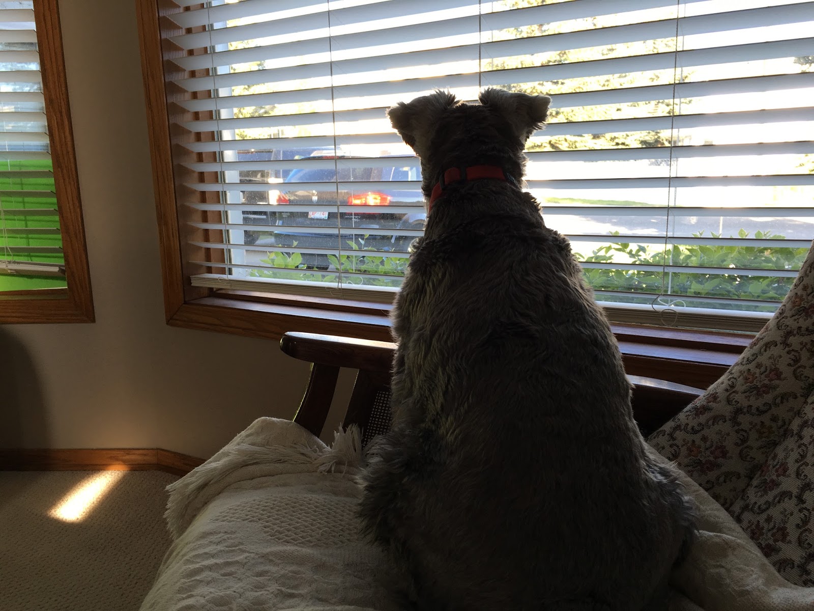 Libby watching a rabbit on the front lawn. There's no doubt she'd like to get a hold of rabbits and squirrels.